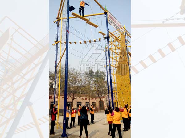 規格:占地17米×17米,由15個1米×1米×4米高的站臺組成。平臺高2米。起點和終點設有樓梯。   包含項目:獨木橋、勇往直前、圓木橋、圓木秋千、等…